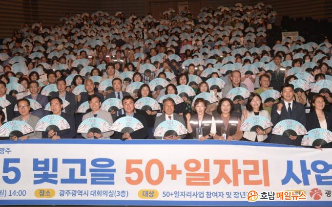 °±âÁ¤ ±¤ÁÖ½ÃÀåÀº ¡°ºû°íÀ»50+ÀÏÀÚ¸®¿¡ Âü¿©ÇÏ´Â Àå³âÃþµéÀº »ê¾÷È, ¹ÎÁÖÈ, IMF µîÀ» °ÞÀ¸¸é¼ üµæÇÑ Áö½Ä°ú °æÇè, ³ëÇϿ츦 »çȸ¿¡ Àü´ÞÇÏ¸ç ºÀ»çÇϰíÀÚ ¸ð¿´´Ù¡±¸ç ¡°À̵éÀº ¾î´À ´©±¸¿Í ºñ±³µÇÁö ¾ÊÀ» Á¤µµ·Î ưưÇÑ ¸ö°ú ¸¶À½°ú Á¤½ÅÀ¸·Î ¹«ÀåÇÑ ¸ÚÁø ¾î¸¥ÀÌ´Ù. À̵éÀÌ Áñ°Ì°Ô ÀÏÇÒ ¼ö ÀÖµµ·Ï, À̵éÀÇ °æÇè°ú ¿ª·®ÀÌ Áö¿ª»çȸ ¹ßÀü¿¡ ±â¿©ÇÒ ¼ö ÀÖµµ·Ï, ±¤Áֽð¡ Áö¿øÀ» ¾Æ³¢Áö ¾Ê°Ú´Ù¡±°í °Á¶Çß´Ù.