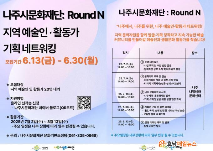 ³ªÁֽù®ÈÀç´Ü(´ëÇ¥ÀÌ»ç ±èÂùµ¿)Àº Áö¿ª ¿¹¼úÀΰú ¹®È¿¹¼ú Ȱµ¿°¡ÀÇ Ã¢ÀÛ ¿ª·® °È¿Í ³×Æ®¿öÅ© ±â¹Ý Á¶¼ºÀ» À§ÇÑ 2025³â Áö¿ª¹®È ³×Æ®¿öÅ· ÇÁ·Î±×·¥ ¡®Round N¡¯À» º»°Ý ÃßÁøÇÑ´Ù.