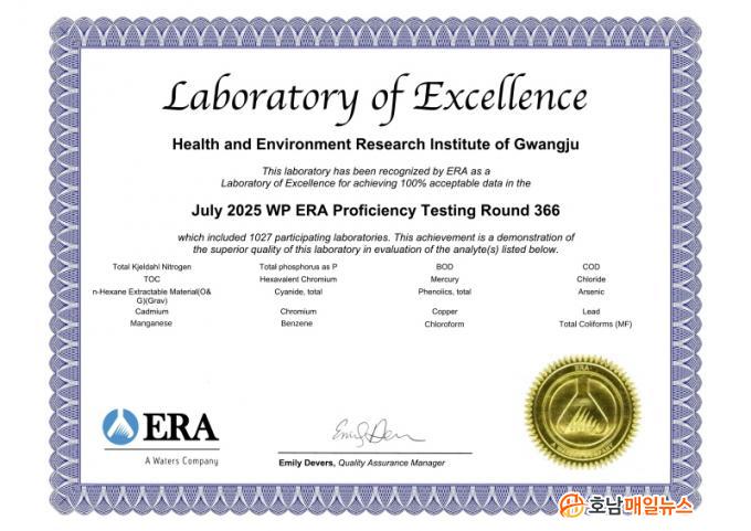 ±¤ÁÖº¸°Çȯ°æ¿¬±¸¿øÀº À̹ø ¼º°ú·Î 10³â ¿¬¼Ó ±¹Á¦ ¼÷·Ãµµ½ÃÇè¿¡¼ ¿ì¼öÇÑ Æò°¡¸¦ À̾¸ç, ÀϰüµÈ ǰÁú°ü¸® ü°è¿Í ¼¼°èÀû ¼öÁØÀÇ ºÐ¼®´É·ÂÀ» ÀçÈ®ÀÎÇß´Ù. ¸Å³â ÀÚ¹ßÀûÀ¸·Î ½ÃÇè¿¡ Âü¿©ÇØ Á¤È®¼º°ú °ø½Å·ÂÀ» °ËÁõ¹Þ°í ÀÖÀ¸¸ç, ½Ã¹ÎÀÇ ½Å·Ú È®º¸¸¦ À§ÇÑ Ã¼°èÀû ³ë·ÂÀ» Áö¼ÓÇϰí ÀÖ´Ù.