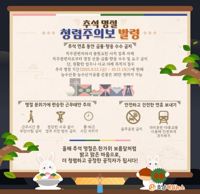 ȼø±ºÀº Ãß¼® ¸íÀý ºÐÀ§±â¿¡ Æí½ÂÇØ ±Ýǰ¡¤¼±¹°¡¤ÇâÀÀ ¼ö¼ö µî Çൿ°·É ¹× ûʱÝÁö¹ý À§¹Ý »ç·Ê ¹ß»ýÀ» ¸·°í, ¸ðµç °øÁ÷ÀÚ¿¡°Ô °æ°¢½ÉÀ» ÁÖ±â À§ÇØ Ã»·ÅÁÖÀǺ¸¸¦ ¹ß·ÉÇß´Ù°í ¹àÇû´Ù.