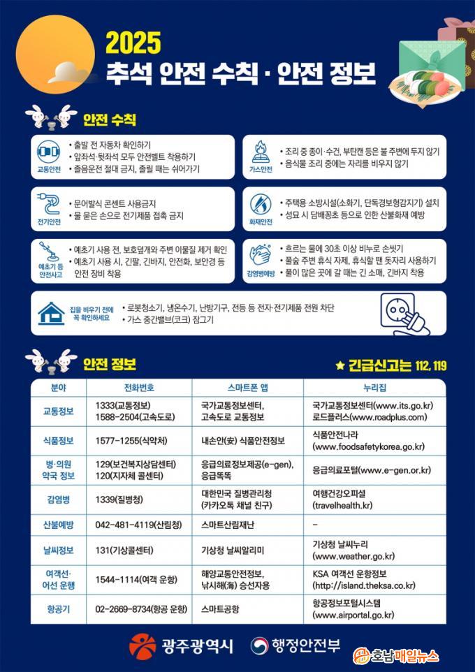 ±¤Áֽô Ãß¼® Àü±îÁö ºÐ¾ßº° ¾ÈÀüÁ¡°ËÀ» ¸¶Ä¡°í, ¿¬ÈÞ°¡ ³¡³ª´Â 10¿ù 9ÀϱîÁö ±¤Áֽà ´©¸®Áý, Àü±¤ÆÇ, »çȸ°ü°è¸Á¼ºñ½º(SNS) µîÀ» ÅëÇØ ½Ã¹Îµé¿¡°Ô ¾ÈÀü¼öÄ¢°ú »ýȰÁ¤º¸¸¦ ¾È³»ÇÑ´Ù.