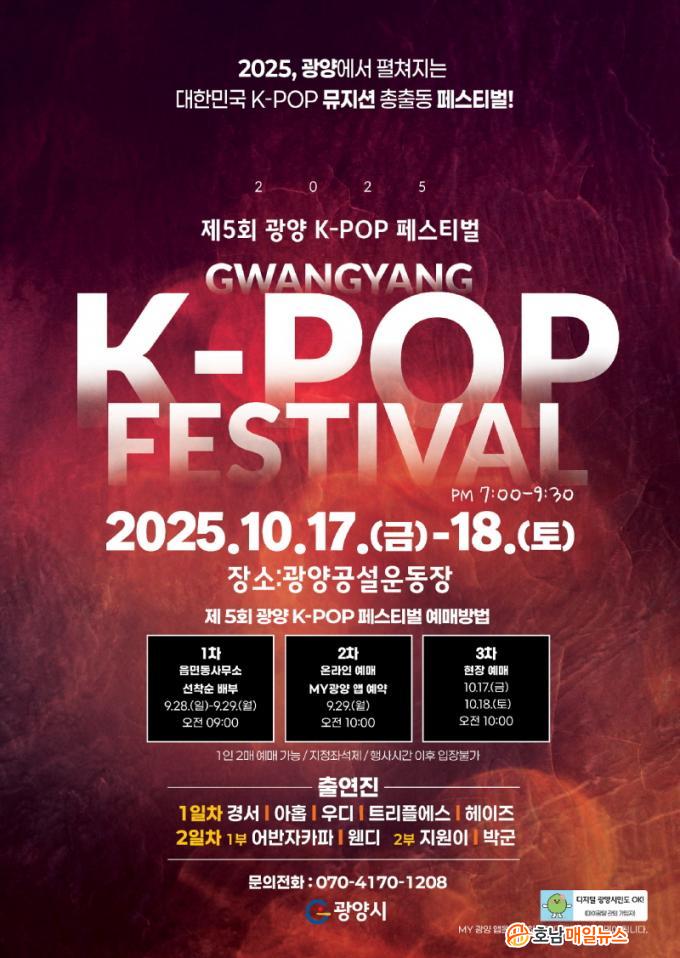 ½Ã´Â Á¦5ȸ ±¤¾ç K-POP Æä½ºÆ¼¹ú ÀÔÀå±ÇÀ» ¿À´Â 28ÀÏ~29ÀÏ À¾¸éµ¿ ¹èºÎ, 29ÀÏ ¡®MY±¤¾ç¡¯ ¾Û ¿Â¶óÀÎ ¹èºÎ, Çà»ç ´çÀÏ ÇöÀå ¹èºÎ±îÁö ÃÑ 3Â÷¿¡ °ÉÃÄ ¹èºÎÇÑ´Ù°í ¹àÇû´Ù.