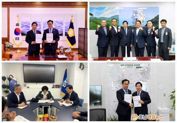 °ø¿µ¹Î ±º¼ö´Â ¿ì¿ø½Ä ±¹È¸ÀÇÀåÀ» ºñ·ÔÇØ ¸Í¼º±Ô ±¹Åä±³ÅëÀ§¿øÀå, ¾î±â±¸ ³óÇØ¼öÀ§¿øÀå, ¹®±ÝÁÖ¡¤¹ÚÈ«±Ù¡¤¾Èµµ°É¡¤À̰³È£¡¤Á¶ÀÎö¡¤ÇÑÁ¤¾Ö ÀÇ¿øÀ» Â÷·Ê·Î ¸¸³ª ¡ã±¹µµ 15È£¼± °íÈï~ºÀ·¡ È®Àå »ç¾÷ Á¶±â ¿Ï°øÀ» À§ÇÑ ¼³°èºñ ¹Ý¿µ ¡ã±¹¸³ ´ÙµµÇØ »ê¸²Ä¡À¯¿ø Á¶¼º ¡ã°íÈï ¿ìÁÖ¼± öµµ °Ç¼³ ¡ã¿ìÁÖ°úÇаü Àü½Ã¹° °³¼± ¡ã½º¸¶Æ® º¹ÇÕ °øµ¿¹°·ù¼¾ÅÍ °Ç¸³ ¡ã¹Î°£ Àü¿ë ¿ìÁֹ߻çü ¿£Áø ¿¬¼Ò ½ÃÇè½Ã¼³ ±¸Ãà ¡ã±Í¾îÇб³ ¼³Ä¡ µî ÃÑ 7°Ç¿¡ ´ëÇØ ±¹ºñ Áö¿øÀÇ Çʿ伺À» ¼³¸íÇÏ°í °ÇÀÇÇß´Ù.