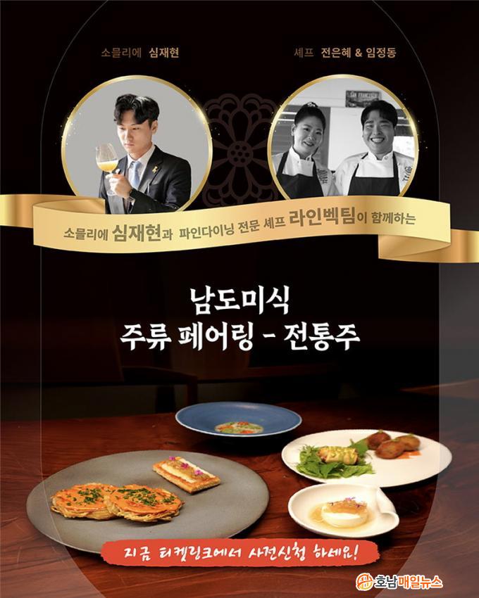 10¿ù 11~12ÀÏ ¹Ì½ÄÀ̺¥Æ®Á¸¿¡¼´Â ÀüÅëÁÖÆä¾î¸µÀÌ ÁøÇàµÈ´Ù. ȸ´ç 100¸í ±Ô¸ð·Î ¸¶·ÃµÈ À̹ø ÇÁ·Î±×·¥Àº °íÈï À¯ÀÚÁÖ, °Áø ÄÚ¸®¾È ÈÀÌÆ®, ¸ñÆ÷ ¹Ð¹°Å¹ÁÖ, ´ã¾ç Ãß¼ºÁÖ, ³ªÁÖ ³ª°ú µî Áö¿ªÀ» ´ëÇ¥ÇÏ´Â ÀüÅëÁÖ¸¦ ¾ö¼±ÇØ ³²µµÀÇ 7°¡Áö ´Ù¾çÇÑ ¿ä¸®¿Í ¦Áö¾î ¼±º¸ÀδÙ. ³²µµÀÇ ÇâÅ伺°ú âÀǼºÀ» µ¿½Ã¿¡ üÇèÇÒ ¼ö ÀÖÀ¸¸ç, ¼Ò¹É¸®¿¡ÀÇ ÇØ¼³, °ø¿¬ ¿ä¼Ò°¡ ´õÇØÁ® ÀüÅëÁÖ¸¦ »õ·Ó°Ô Áñ±æ ¼ö ÀÖ´Â °¡´É¼ºÀ» Á¦½ÃÇÑ´Ù.