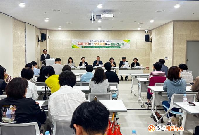 °£´ãȸ¿¡´Â À̰³È£ ±¹È¸ÀÇ¿ø, ¿À¹ÌȤýÇѼ÷°æ Àü³²µµÀÇ¿ø, Àü³² ´ÙÇÔ²²µ¹º½ÇùÀÇü µî 40¿© ¸íÀÌ Âü¼®ÇØ ÇöÀåÀÇ ¾î·Á¿ò°ú Á¦µµ °³¼± ¹æ¾ÈÀ» ÇÔ²² ¸ð»öÇϱâ À§ÇØ ¸¶·ÃµÆ´Ù.