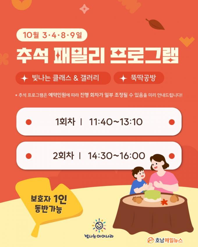 º¸È£ÀÚ 1ÀÎÀÌ µ¿¹Ý ÀÔÀåÇØ ¾ÆÀÌ¿Í ÇÔ²² ÇÁ·Î±×·¥À» Áñ±æ ¼ö ÀÖÀ¸¸ç, µ¿È°øÀÛ¼Ò¿Í °ø¿ë ¶ó¿îÁö Æ÷ÅäÁ¸ µîÀº ¿¹¾à ¾øÀÌ ÀÌ¿ë °¡´ÉÇÏ´Ù. ±âŸ ÀÚ¼¼ÇÑ ÀÏÁ¤°ú Âü¿© ¹æ¹ýÀº ºû³ª´Â ¾ÆÀ̳ª¶ó ´©¸®ÁýÀ» ÅëÇØ È®ÀÎÇÒ ¼ö ÀÖ´Ù.