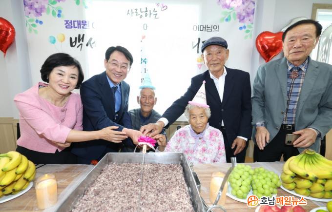 À̳¯ 100¼¼ ¾î¸£½Å²² µå¸®´Â û·ÁÀå°ú ÇÔ²² °úÀÏ¡¤ÂüÄ¡¼¼Æ® µî À§¹®Ç°À» Àü´ÞÇßÀ¸¸ç, ÄÉÀÌÅ© Ä¿ÆÃ°ú ±â³äÃÔ¿µÀ» ÅëÇØ Âü¼®ÀÚ ¸ðµÎ°¡ ¾î¸£½ÅµéÀÇ Àå¼ö¸¦ ÃàÇÏÇÏ´Â ½Ã°£À» °¡Á³´Ù.