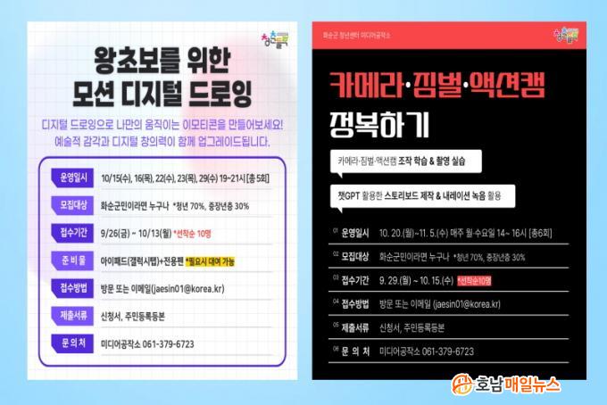 2°³ ±³À° ¸ðµÎ ȼø±º¹ÎÀÌ¸é ´©±¸³ª ½ÅûÀÌ °¡´ÉÇϸç, ¸ðÁý ÀοøÀÇ 70%´Â û³âÀ» ¿ì¼± ¼±¹ßÇÏ°í ³ª¸ÓÁö 30%´Â ÁßÀå³âÃþÀ» ¼±¹ßÇÒ ¿¹Á¤ÀÌ´Ù. ½ÅûÀ» À§Çؼ´Â ½Åû¼¿Í Áֹεî·Ïµîº»À» Á¦ÃâÇØ¾ß ÇÏ¸ç ¡âµðÁöÅеå·ÎÀ× ±³À°Àº 10¿ù 13ÀϱîÁö, ¡âÄ«¸Þ¶ó¡¤Áü¹ú¡¤¾×¼ÇÄ· Á¤º¹Çϱ⠱³À°Àº 10¿ù 15ÀϱîÁö û³â¼¾ÅÍ ¹æ¹® ¶Ç´Â °ø½Ä ȨÆäÀÌÁö(https://www.hwasun.go.kr/youth)¸¦ ÅëÇØ ½ÅûÀÌ °¡´ÉÇÏ´Ù.