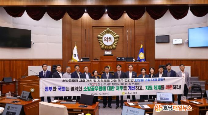 ³ªÁÖ½ÃÀÇȸ´Â À̹ø °ÇÀǾÈÀ» ÅëÇØ ¡ã¼Ò¹æ°ø¹«¿øÀÇ Á¤½Å°Ç° °ü¸®¿Í Æ®¶ó¿ì¸¶ Ä¡·á¸¦ ±¹°¡ Ã¥ÀÓÀ¸·Î Á¦µµÈÇϰí Áö¼ÓÀû¡¤Ã¼°èÀû Áö¿øÃ¼°è¸¦ ¸¶·ÃÇÒ °Í ¡ãÀÎ·Â È®Ãæ, ±Ù¹«È¯°æ °³¼±, º¹Áö¿¹»ê ¾ÈÁ¤È·Î ¾ÈÀü ±Ù¹« ¿©°ÇÀ» Á¶¼ºÇÒ °Í ¡ã°ø·Î Á᫐ º¸»ó¡¤½ÂÁøÃ¼°è¸¦ È®¸³ÇØ Çå½Å°ú °ø·Î°¡ Á¤´çÈ÷ Æò°¡¹Þ´Â Àλçü°è¸¦ ¸¶·ÃÇÒ °Í ¡ã°¢ ÁöÀÚü ÀÇ¿ë¼Ò¹æ´ëÀÇ Àü¹®¼ºÀ» Áö¿ª»çȸ Áö¿ø°ú Àç³ ´ëÀÀ¿¡ ÇÕ¸®ÀûÀ¸·Î Ȱ¿ëÇÒ ¼ö ÀÖ´Â Áö¿øÃ¼°è¸¦ ¸¶·ÃÇÒ °ÍÀ» Ã˱¸Çß´Ù.