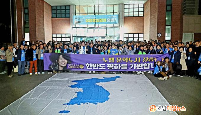 10¿ù 23ÀÏ(¸ñ) ¿ÀÈÄ2½Ã¿¡´Â °ü»êÀ¾ »ï»ê¹æÁ¶Á¦¿¡¼¡®ÅëÀÏ¿°¿ø °È±â´ëȸ¡¯°¡ ¿¸°´Ù. ±º¹Î 350¿© ¸íÀÌ ÆòÈÀÇ »ó¡±æÀ» µû¶ó °È´Â´Ù. ÇöÀå¿¡¼´Â ÅëÀÏÀ½¾Çȸµµ ÇÔ²² ¿·Á ÅëÀÏÀÇ ¸Þ½ÃÁö¸¦ ³ë·¡·Î ÀüÇÑ´Ù.