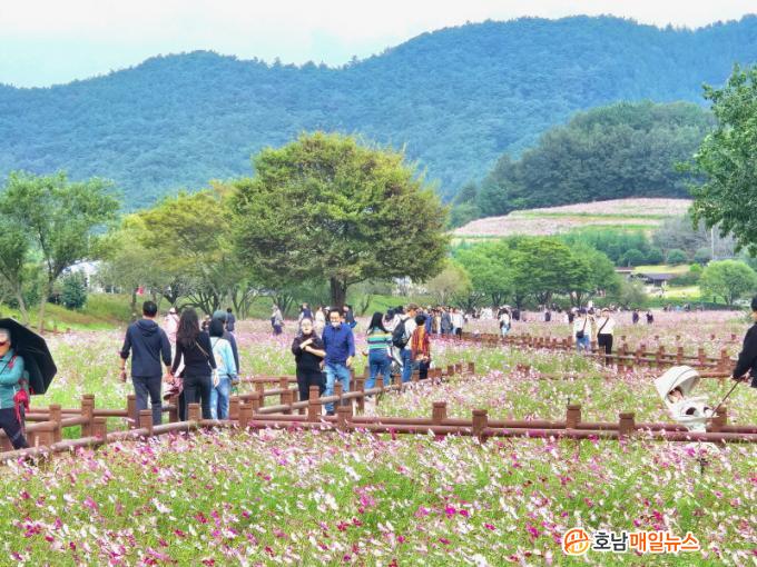 ¸é¹Î°ú ¹æ¹®°´µéÀº ²É¹ç »çÁøÀ» ³²±â¸ç °¢¾ç°¢»öÀÇ ¸ð½ÀÀ¸·Î ÃàÁ¦¸¦ Áñ°å´Ù. À̹ø ÃàÁ¦´Â ¿µ»ê° ÀÏ´ë 1¸¸ 2õ Æò ÄÚ½º¸ð½º ²É¹çÀ» Á¶¼ºÇØ ±âÁ¸ÀÇ 3¹è ÀÌ»óÀÇ ±Ô¸ð·Î È®´ëµÆ°í, ¸ùź¸é ÀÌÀåÇùÀÇȸ, ¹ø¿µÈ¸, ¹«¾ÈÁß±âÇùȸ µî ÀÚ¹ßÀû Àç´É±âºÎ°¡ À̾îÁ® ¸é¹ÎµéÀÇ ¼ÕÀÌ ´êÁö ¾ÊÀº °÷ÀÌ ¾ø¾î ´õ¿í ¶æ±íÀº ÃàÁ¦°¡ µÆ´Ù.