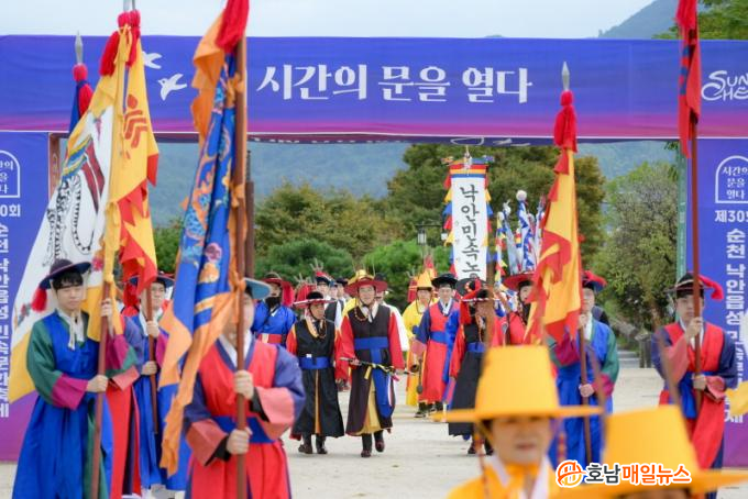 ¡®¼øÃµ ³«¾ÈÀ¾¼º, ½Ã°£ÀÇ ¹®À» ¿´Ù¡¯¶ó´Â ÁÖÁ¦·Î ¿¸° À̹ø ÃàÁ¦´Â 17ÀÏ ¿ÀÈÄ ³«¾È±º¼ö ºÎÀÓÇà·Ä°ú ±º¾Ç´ë ÇàÁøÀ¸·Î ½ÃÀÛµÆÀ¸¸ç, Á¶¼±½Ã´ë·ÎÀÇ ¹®À» Ȱ¦ ¿©´Â »ó¡ÀûÀÎ ÆÛÆ÷¸Õ½º¸¦ ¼±º¸ÀÎ °³¸·½ÄÀº ³ë°ü±Ô ¼øÃµ½ÃÀåÀ» ºñ·ÔÇÑ ÁÖ¿ä ³»ºóµéÀÌ Âü¿©ÇÑ °¡¿îµ¥ ÁøÇàµÆ´Ù.