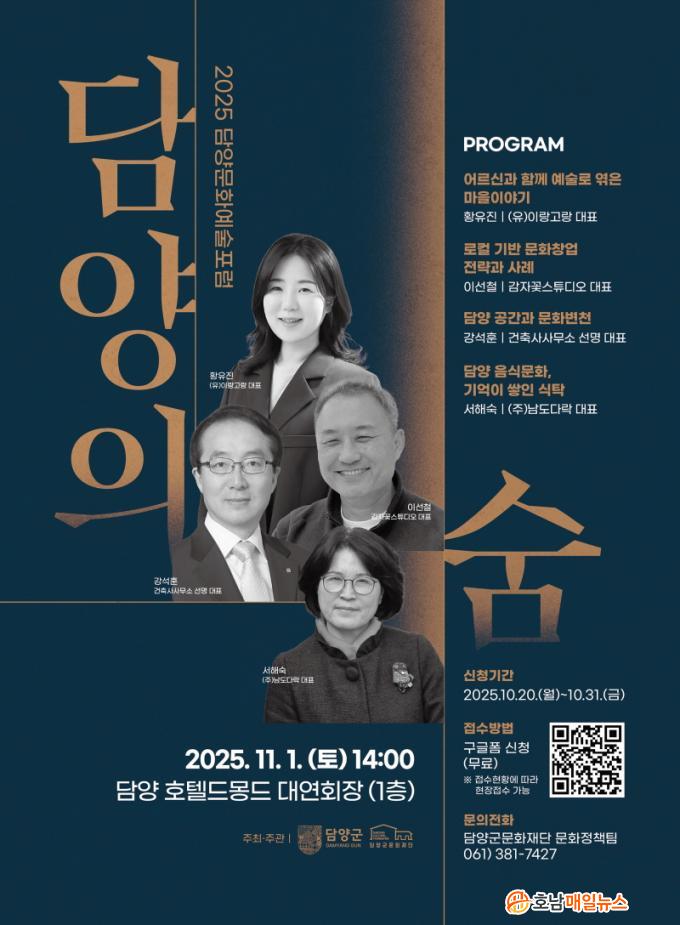 [È£³²¸ÅÀÏ´º½º = ±è¿¬Èñ ±âÀÚ] ´ã¾ç±º¹®È­Àç´Ü(ÀÌ»çÀå Á¤Ã¶¿ø, ÀÌÇÏ Àç´Ü)Àº 11¿ù 1ÀÏ Åä¿äÀÏ ¿ÀÈÄ 2½Ã, ´ã¾ç È£ÅÚµå¸ùµå ´ë¿¬È¸Àå¿¡¼­ 2025 ´ã¾ç ¹®È­¿¹¼úÆ÷·³ ¡¸´ã¾çÀÇ ¼û¡¹À» °³ÃÖÇÑ´Ù°í ¹àÇû´Ù.
