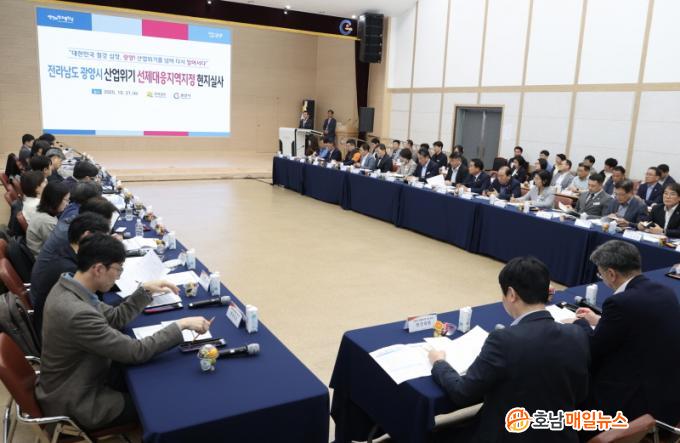 [È£³²¸ÅÀÏ´º½º = ±è¿¬Èñ ±âÀÚ] Àü¶ó³²µµ´Â 21ÀÏ ±¤¾ç½Ã¿¡¼­ ¿­¸° »ê¾÷À§±â ¼±Á¦´ëÀÀÁö¿ª ÁöÁ¤ ÇöÁö ½Ç»ç¿¡¼­ ö°­»ê¾÷ÀÇ ±¸Á¶Àû À§±â »óȲÀ» ¼³¸íÇϰí Á¤ºÎÀÇ Àû±ØÀûÀÎ Áö¿ø°ú Á¶¼ÓÇÑ ÁöÁ¤À» °­·ÂÈ÷ ¿äûÇß´Ù.