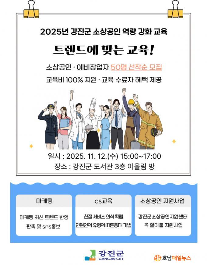 À̹ø ±³À°Àº °³ÀÎ(¼Ò»ó°øÀÎ ¹× ¿¹ºñâ¾÷ÀÚ)°ú ´Üü(»óÀÎȸ ¹× ¿¹ºñ »óÀÎȸ)·Î ³ª´² Á¢¼ö¹ÞÀ¸¸ç, ÃÑ 50¸íÀ» ¼±Âø¼ø ¸ðÁýÇÑ´Ù. °³ÀÎÀº ½Åû¼¿Í °³ÀÎÁ¤º¸ Á¦°ø µ¿ÀǼ¸¦, ´Üü´Â ´Üü¿ë ½Åû¼¸¦ ÀÛ¼ºÇØ 11¿ù 7ÀϱîÁö °Áø±ºÃ» Áö¿ª°æÁ¦¿¬°áÆÀ¿¡ Á÷Á¢ Á¦ÃâÇϰųª °Áø±º ´©¸®Áý ¼Ò»ó°øÀÎÁö¿ø¼¾Å͸¦ ÅëÇØ ¿Â¶óÀÎÀ¸·Î ½ÅûÇÏ¸é µÈ´Ù.