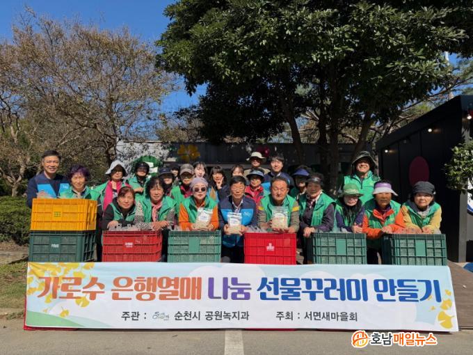 À̳¯ °ø¿ø³ìÁö°ú Á÷¿ø°ú ¼¸é»õ¸¶À»È¸ ȸ¿ø µî 30¿© ¸íÀÌ Âü¿©ÇØ °ÇÁ¶¡¤¼±º°ÇÑ ÀºÇ࿸Ÿ¦ Á¤¼º²¯ Æ÷ÀåÇØ ÃÑ 300°³ÀÇ ³ª´® ²Ù·¯¹Ì¸¦ ¿Ï¼ºÇß´Ù.