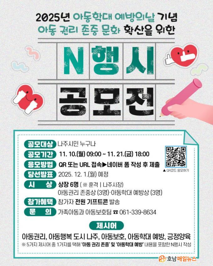 ³ªÁÖ½Ã(½ÃÀå À±º´ÅÂ)´Â ¿À´Â 11¿ù 19ÀÏ ¡®Á¦19ȸ ¼¼°è ¾Æµ¿ÇÐ´ë ¿¹¹æÀÇ ³¯¡¯À» ±â³äÇØ Á¦4ȸ ¾Æµ¿ ±Ç¸® Á¸Áß ¹®È È®»êÀ» À§ÇÑ ¡®NÇà½Ã °ø¸ðÀü¡¯À» °³ÃÖÇÑ´Ù°í 3ÀÏ ¹àÇû´Ù.