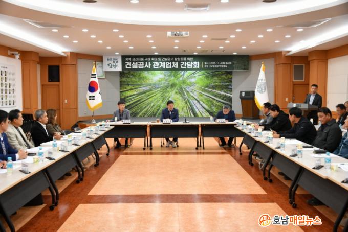 À̹ø °£´ãȸ´Â Áö¿ª °Ç¼³¾÷ü Âü¿© È®´ë¿Í Áö¿ª»ý»êǰ ±¸¸Å ÃËÁøÀ» À§ÇØ ¸¶·ÃµÈ ÀÚ¸®·Î, ±º °ü°èÀÚ¿Í ³ó¾î¾÷Åä¸ñºÐ¾ß ¼³°è»ç, ³ó°ø¡¤»ê¾÷´ÜÁö ´ëÇ¥´Ü, Àü¹®°Ç¼³¾÷Çùȸ ȸ¿ø»ç ´ëÇ¥ µî 38¸íÀÌ Âü¼®Çß´Ù.