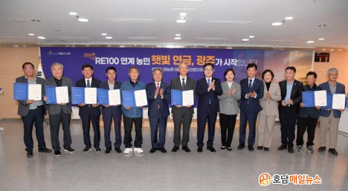 °±âÁ¤ ±¤ÁÖ½ÃÀåÀº ¡°À̹ø »ç¾÷Àº ³ó¹Î¿¡°Ô´Â ÇÞºû¿¬±ÝÀ», ±â¾÷¿¡°Ô´Â RE100 ½ÇÇöÀ» °¡´ÉÄÉ ÇÏ´Â ÀÏ°Å¾çµæ »ç¾÷ÀÌ´Ù¡±¸ç ¡°³ó¹Î ÁÖµµÀÇ ¹Î°üÇùÀÇȸ°¡ »çȸÀû ÇÕÀǸ¦ À̲ô´Â ¼º°ø ¸ðµ¨ÀÌ µÇ¾î ³ó¾÷°ú ¿¡³ÊÁö°¡ »ó»ýÇÏ´Â Àü±¹Àû Ç¥ÁØÀ» ¸¸µé°Ú´Ù¡±°í ¸»Çß´Ù.