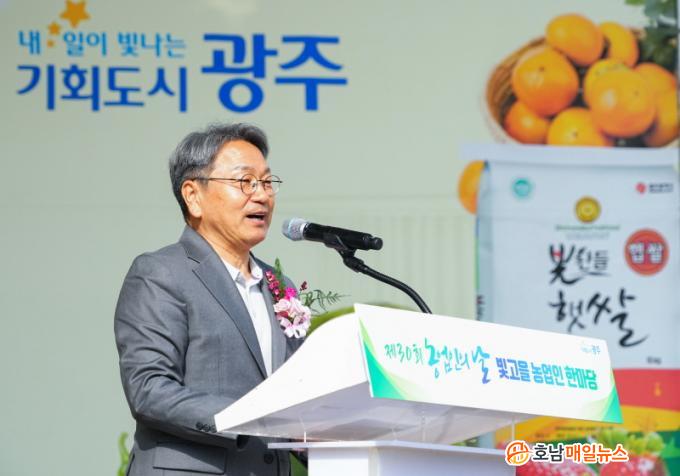 °±âÁ¤ ±¤ÁÖ½ÃÀåÀº ¡°³ó¾÷ÀÎÀÇ ³¯Àº ³ó¾÷ÀÇ Á߿伺°ú ³ó¾÷ÀÎÀÇ ³ë°í¸¦ µÇ»õ±â´Â ¶æ±íÀº ³¯ÀÌ´Ù¡±¸ç ¡°AI Á߽ɵµ½Ã ±¤ÁÖ¿¡ °É¸Â°Ô, AI±â¼úÀ» Ȱ¿ëÇÑ ½º¸¶Æ®ÆÊ Áö¿øÀ» È®´ëÇÏ´Â µî ³ó¾÷Á¤Ã¥À» Áö¼Ó ÃßÁøÇϰڴ١±°í ¸»Çß´Ù.