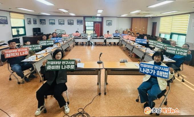 Âü¼®ÀÚµéÀº ¾²·¹±â ¹«´ÜÅõ±â ±ÙÀý, ºÒ¹ý ÁÖÁ¤Â÷ ÀÚÁ¦ µî »ýȰ ¼Ó Áú¼ ÁöŰ±â ½ÇõÀ» ´çºÎÇÏ¸ç ¡°ÀΰøÅÂ¾ç ¿¬±¸½Ã¼³, ÁغñµÈ ³ªÁÖ·Î!¡±, ¡°´ëÇѹα¹ ¿¡³ÊÁö ¹Ì·¡, ³ªÁÖ°¡ ÇØ¹ýÀÌ´Ù!¡± µîÀÇ ±¸È£¸¦ ¿ÜÄ¡¸ç ÀΰøÅÂ¾ç ¿¬±¸½Ã¼³ÀÇ ³ªÁÖ À¯Ä¡¸¦ ¿°¿øÇÏ´Â ÆÛÆ÷¸Õ½º¸¦ ÁøÇàÇß´Ù.