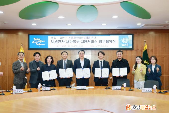 À̳¯ Çù¾à½Ä¿¡´Â ¹éÀçȰ¿ä¾çº´¿ø, Àü³²Á¦ÀÏ¿ä¾çº´¿ø, ȼø¹«Áö°³¿ä¾çº´¿ø, ȼøÇö´ë¿ä¾çº´¿ø µî ÃÑ 4°³ ÀÇ·á±â°ü ´ëÇ¥¿Í ´ã´çÀÚ°¡ Âü¼®ÇßÀ¸¸ç, ±¸º¹±Ô ȼø±º¼ö°¡ ȸÀÇ¿¡ Âü¼®ÇØ Çù·Â Àǻ縦 È®ÀÎÇß´Ù.