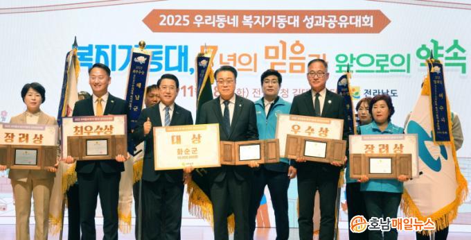 º¹Áö±âµ¿´ë ¼º°úÆò°¡ °á°ú, È­¼ø±ºÀÌ ´ë»ó ¿µ¿¹¸¦ ¾È¾Æ 1õ¸¸ ¿øÀÇ Æ÷»ó±ÝÀ» ¹Þ¾Ò°í, ÇØ³²±ºÀÌ ÃÖ¿ì¼ö»ó, ¿Ïµµ±ºÀº ¿ì¼ö»óÀ», Áøµµ±º°ú ¿©¼ö½Ã´Â °¢°¢ Àå·Á»óÀ» ¹Þ¾Ò´Ù. ºÎ´ëÇà»ç·Î ¿ì¸®µ¿³× º¹Áö±âµ¿´ë, ã¾Æ°¡´Â Àü³²Çູ¹ö½º, º¹ÁöÀ§±â¾Ë¸²¾Û, Áö¿ª»çȸ¼­ºñ½ºÅõÀÚ»ç¾÷ Àü½Ã¡¤È«º¸ ºÎ½º°¡ ¿î¿µµÅ ´Ù¾çÇÑ Áö¿ª º¹Áö ¼­ºñ½º¸¦ È«º¸Çß´Ù.