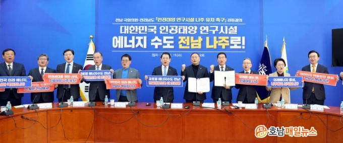 Àü³²µµ´Â À̳¯ ±è¿µ·Ï µµÁö»ç, ±è¿øÀÌ ¹ÎÁÖ´ç Àü³²µµ´çÀ§¿øÀå, ½ÅÁ¤ÈÆ ±¹È¸ ÇàÁ¤¾ÈÀüÀ§¿øÀå, ¹ÚÁö¿ø¡¤À̰³È£¡¤Á¶°è¿ø¡¤±è¹®¼ö¡¤±ÇÇ⿱ ±¹È¸ÀÇ¿ø°ú À±º´Å ³ªÁÖ½ÃÀå µîÀÌ Âü¼®ÇÑ °¡¿îµ¥ ±¹È¸ ¹ÎÁÖ´ç ¿ø³»´ëÇ¥ ȸÀǽǿ¡¼ ¡®ÀΰøÅÂ¾ç ¿¬±¸½Ã¼³ Àü³² ³ªÁÖ À¯Ä¡ Àü³² ±¹È¸ÀÇ¿ø °øµ¿°áÀǹ®¡¯À» ¹ßÇ¥Çß´Ù. ¿ÀÈÄ¿¡´Â ±¤ÁÖ¸¦ Áö¿ª±¸·Î µÐ ¾Èµµ°É¡¤ÀüÁø¼÷¡¤Á¤ÁØÈ£ ±¹È¸ÀÇ¿ø°ú ±¹È¸ ¼ÒÅë°ü¿¡¼ °øµ¿°áÀǹ®À» ¹ßÇ¥, ÀΰøÅÂ¾ç ¿¬±¸½Ã¼³ À¯Ä¡ ³ë·Â¿¡ ÈûÀ» ½Ç¾ú´Ù.