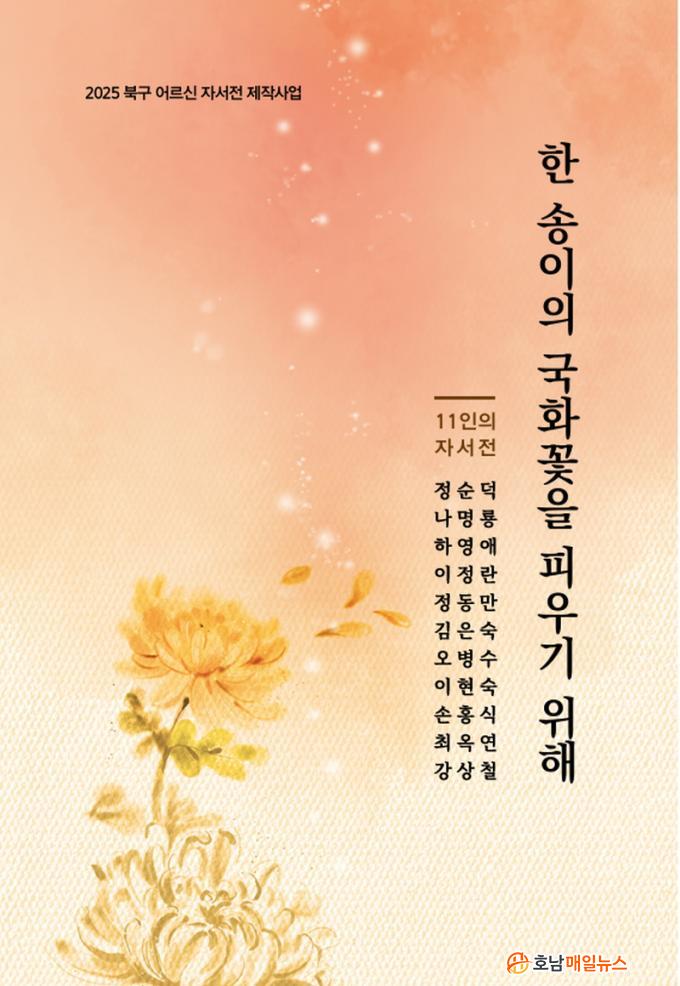 ºÏ±¸¿¡ °ÅÁÖÇÏ´Â 60¼¼ ÀÌ»ó ¾î¸£½ÅÀ» ´ë»óÀ¸·Î Áö³ 7¿ùºÎÅÍ ¾à 5°³¿ù µ¿¾È 10ȸÂ÷ÀÇ ±Û¾²±â ±³À°À» ÁøÇàÇßÀ¸¸ç À̸¦ Åä´ë·Î ¾î¸£½ÅµéÀÌ Á÷Á¢ ÀÚ¼Àü ¿ø°í¸¦ ÁýÇÊÇß´Ù. ±× °á°ú Á¤¼ø´ö, ³ª¸í·æ, ÇÏ¿µ¾Ö, ÀÌÁ¤¶õ, Á¤µ¿¸¸, ±èÀº¼÷, ¿Àº´¼ö, ÀÌÇö¼÷, ¼ÕÈ«½Ä, ÃÖ¿Á¿¬, °»óö µî ÃÑ 11¸íÀÇ ¾î¸£½Å À̾߱Ⱑ ´ã±ä 355ÂÊ ºÐ·®ÀÇ ÀÚ¼ÀüÀÌ ¿Ï¼ºµÆ´Ù.