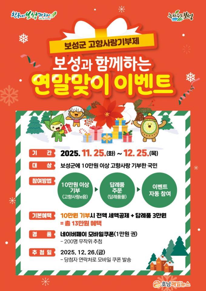 º¸¼º±ºÀº À̺¥Æ® ±â°£ ³» ±âºÎÀÚ Áß ÃÑ 200¸íÀ» ¹«ÀÛÀ§ ÃßÃ·ÇØ ¡®³×À̹öÆäÀÌ 1¸¸ ¿ø ¸ð¹ÙÀÏ ÄíÆù¡¯À» Á¦°øÇÑ´Ù. Ãß÷Àº 12¿ù 26ÀÏ¿¡ ÁøÇàµÇ¸ç, ´ç÷ÀÚ´Â ¹®ÀÚ ¸Þ½ÃÁö¸¦ ÅëÇØ °³º° ¾È³»µÈ´Ù. À̺¥Æ®¸¦ ÅëÇØ °íÇâ»ç¶û±âºÎÁ¦ Âü¿© È®´ë´Â ¹°·Ð, Áö¿ª ³ó¡¤Æ¯»ê¹° ¼Òºñ ÃËÁø°ú º¸¼º±º ºê·£µå °¡Ä¡ Á¦°í¿¡µµ ±àÁ¤ÀûÀÎ È¿°ú¸¦ °¡Á®¿Ã °ÍÀ¸·Î ±â´ëÇÑ´Ù.