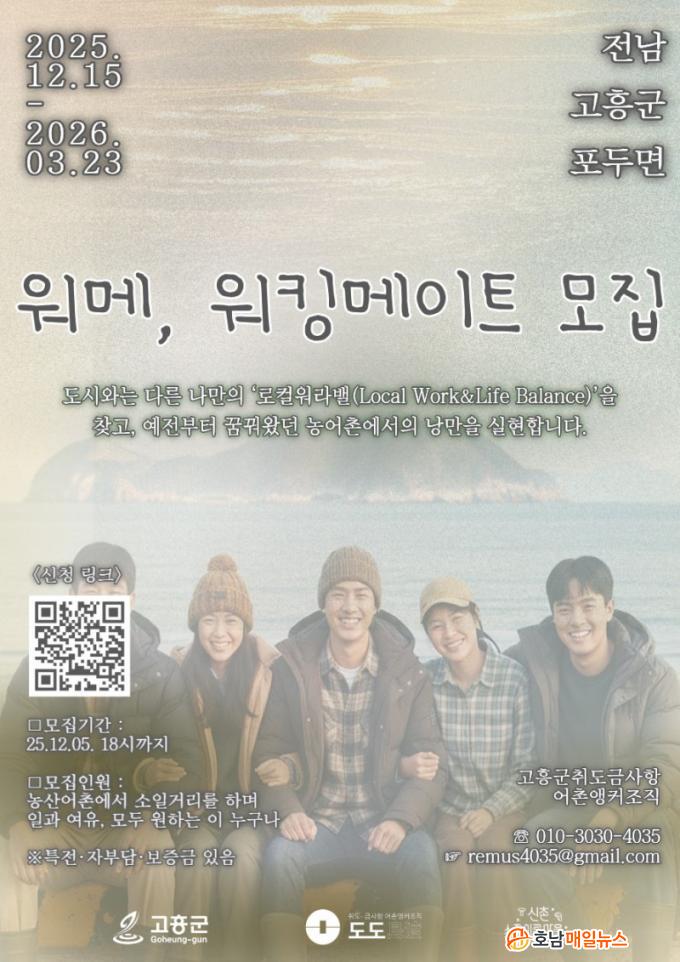 Âü¿©ÀÚ ¸ðÁýÀº 12¿ù 5ÀϱîÁö, °íÈﱺ Ãëµµ¡¤±Ý»çÇ× ¾îÃ̾ÞÄ¿Á¶Á÷ ȨÆäÀÌÁö(Áö¿ªÀÚ»êÈ Çùµ¿Á¶ÇÕ-Ä¿¹Â´ÏƼ-°øÁö)¸¦ ÅëÇØ ÀÌ·ç¾îÁö¸ç, ¸ðÁýÀοøÀº 3¸íÀÌ´Ù. ¿î¿µ ±â°£Àº 12¿ù 15ÀϺÎÅÍ 2026³â 3¿ù 23ÀϱîÁö ÃÑ 100ÀÏÀ̸ç, Áö¿ª °íÀ¯¹®È¿Í ³ó¡¤Ãࡤ¼ö»ê¾÷¿¡ ¿¸° ¸¶À½°¡ÁüÀ» °¡Áø ´©±¸³ª ½ÅûÇÒ ¼ö ÀÖ´Ù.