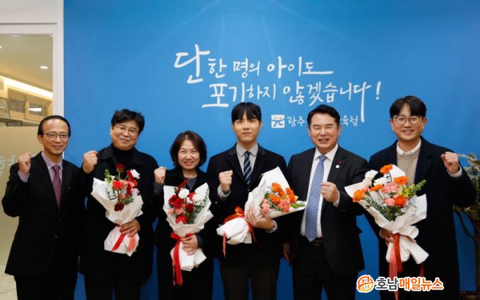 | | ÀÌÁ¤¼± ±¤Áֽñ³À°°¨(¿À¸¥ÂÊ)ÀÌ 9ÀÏ ±¤Áֽñ³À°Ã» ±³À°°¨½Ç¿¡¼ 2026Çг⵵ ¼ö´É½ÃÇè ¸¸Á¡À» ¹ÞÀº ±¤ÁÖ¼¼®°íµîÇб³ ÃÖÀå¿ì Çлý(¿ÞÂÊ)°ú ¸¸³ª ±â³ä»çÁøÀ» ÃÔ¿µÇϰí ÀÖ´Ù. / ±¤Áֽñ³À°Ã» Á¦°ø |