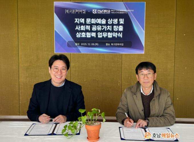 11ÀÏ Àü³²´ë¿¡ µû¸£¸é, Àü³²´ëÇб³ BK21 ÈÞ¸ÕÄɾî Áö´ÉÇü ¹®È¿¹¼úÄÜÅÙÃ÷ÀÇ µðÀÚÀÎÀ¶ÇÕÀÎÀç¾ç¼º ±³À°¿¬±¸´Ü(¾ÆÆ®&µðÀÚÀÎÅ×Å©³î·ÎÁö Çùµ¿°úÁ¤)°ú ºÏ±¸¹®ÈÀÇÁýÀº Áö³ 9ÀÏ Áö¿ª ¹®È¿¹¼ú »ó»ý ¹× »çȸÀû °øÀ¯°¡Ä¡ ½ÇÇöÀ» À§ÇÑ ¾÷¹«Çù¾à(MOU)À» ü°áÇß´Ù.