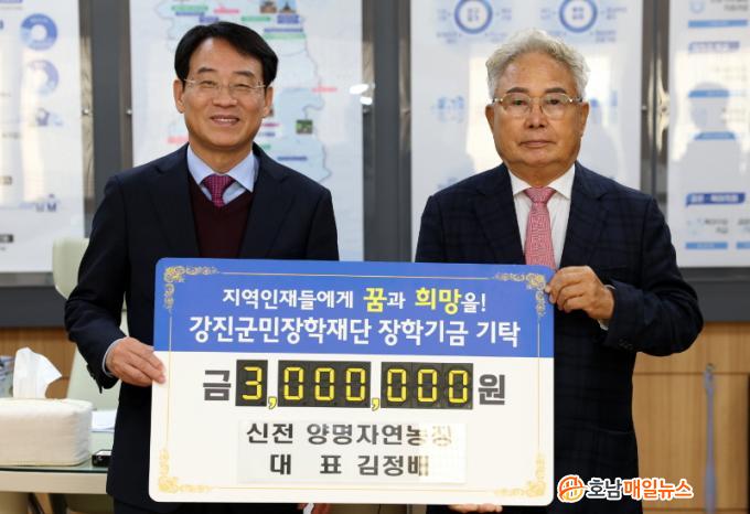 ½ÅÀü¸é¿¡ ÀÖ´Â ¾ç¸íÀÚ¿¬³óÀåÀÇ ±èÁ¤¹è ´ëÇ¥´Â 2016³âºÎÅÍ ²ÙÁØÈ÷ ÀåÇбÝÀ» ±âÅ¹ÇØ ÇöÀç±îÁö ÃÑ 2õ1¹é¸¸ ¿øÀ» ±âŹ Çß´Ù. ¾ç¸íÀÚ¿¬³óÀåÀº ¿À¸® »çÀ° ±â¼ú»Ó¸¸ ¾Æ´Ï¶ó Çлýµé°ú ±º¹ÎµéÀÇ º¹Áö µî¿¡µµ ½Å°æÀ» ¾²¸ç ´Ù¹æ¸éÀ¸·Î ³ë·ÂÇϰí ÀÖ´Ù. ±èÁ¤¹è ´ëÇ¥´Â ¡°Áö¿ª ÀÎÀçÀÇ ¼ºÀåÀÌ °ð Áö¿ªÀÇ ÈûÀÌ´Ù. ¹è¿òÀ» ÅëÇØ ¼ºÀåÇÑ ÀÎÀçµéÀÌ ´Ù½Ã Áö¿ªÀ» ºû³» ÁÖ±æ ¹Ù¶õ´Ù¡±°í ¸»Çß´Ù.