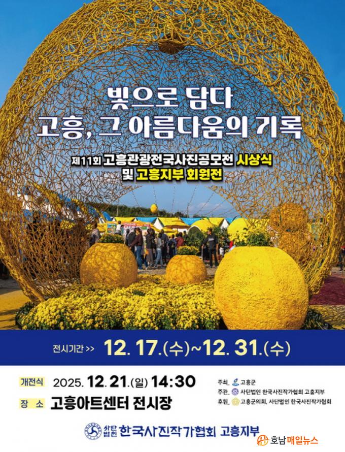 ÇÑÆí, Á¦11ȸ °íÈï°ü±¤ Àü±¹ »çÁø °ø¸ðÀü ½Ã»ó½ÄÀº ¿À´Â 12¿ù 21ÀÏ ¿ÀÈÄ 2½Ã 30ºÐ, °íÈï¾ÆÆ®¼¾ÅÍ 1Ãþ Àü½Ã½Ç¿¡¼ °³ÃÖµÉ ¿¹Á¤ÀÌ´Ù.