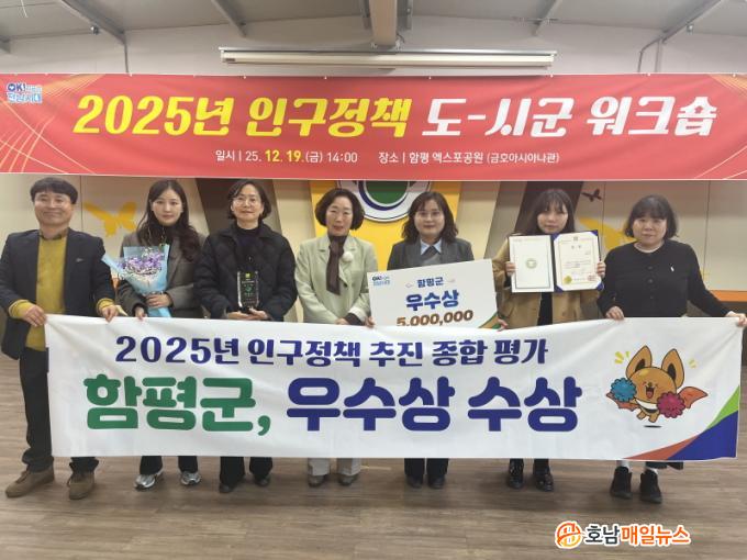 ÇÔÆò±ºÀº Àü³²µµ°¡ Áö³ 19ÀÏ ÇÔÆò¿¢½ºÆ÷°ø¿ø ±ÝÈ£¾Æ½Ã¾Æ³ª°ü¿¡¼ °³ÃÖÇÑ ¡®2025³â Àα¸Á¤Ã¥ Á¾ÇÕÆò°¡¡¯¿¡¼ ¿ì¼ö»óÀ» ¼ö»óÇß´Ù°í 22ÀÏ ¹àÇû´Ù.