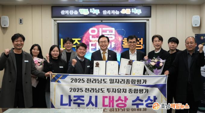 ³ªÁÖ½Ã(½ÃÀå À±º´ÅÂ)´Â Áö³ 24ÀÏ ¿©¼ö¿¢½ºÆ÷ÄÁº¥¼Ç¼¾ÅÍ¿¡¼ ¿¸° ¡®2025³â Àü¶ó³²µµ ÀÏÀÚ¸®¡¤°æÁ¦ ÇѸ¶´ç¡¯ Çà»ç¿¡¼ ÀÏÀÚ¸® âÃâ°ú ÅõÀÚÀ¯Ä¡ 2°³ ºÎ¹®¿¡¼ °¢°¢ ÃÖ°í»óÀÎ ¡®´ë»ó¡¯À» ¼ö»óÇß´Ù°í 26ÀÏ ¹àÇû´Ù.