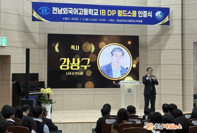 ³ªÁÖ½Ã(½ÃÀå À±º´ÅÂ)´Â Àü³²¿Ü±¹¾î°íµîÇб³°¡ Àü¶ó³²µµ ÃÖÃÊ·Î IB DP ¿ùµå½ºÄð ÀÎÁõÀ» ȹµæÇϰí À̸¦ ±â³äÇÏ´Â ÀÎÁõ½ÄÀ» Áö³ 2ÀÏ Àü³²¿Ü±¹¾î°íµîÇб³¿¡¼ °³ÃÖÇß´Ù°í 5ÀÏ ¹àÇû´Ù.