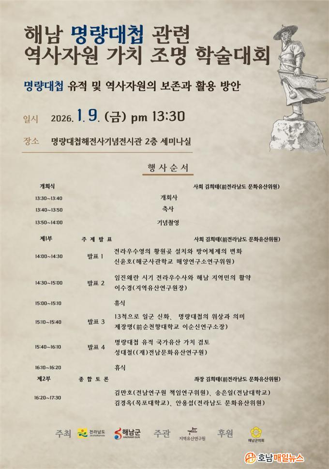 À̳¯ Çмú´ëȸ¿¡¼´Â ¡ãÀü¶ó¿ì¼ö¿µÀÇ ¼³Ä¡¿Í ¹æ¾î üÁ¦ÀÇ º¯È(½ÅÀ±È£, ÇØ±º»ç°üÇб³ ÇØ¾ç¿¬±¸¼ÒÀ§¿ø) ¡ãÀÓÁø¿Ö¶õ ½Ã±â Àü¶ó¿ì¼ö»ç¿Í ÇØ³² Áö¿ª¹ÎÀÇ È°¾à(À̼ö°æ, Áö¿ªÀ¯»ê¿¬±¸¿øÀå) ¡ã13ôÀ¸·Î Àϱº ½ÅÈ, ¸í·®´ëøÀÇ ÀÇ¹Ì¿Í À§»ó(Á¦Àå¸í, Àü ¼øÃµÇâ´ëÀ̼ø½Å¿¬±¸¼ÒÀå) ¡ã¸í·®´ëø À¯Àû ±¹°¡À¯»ê °¡Ä¡ °ËÅä(¼º´ëö, (Àç)Àü³²¹®ÈÀ¯»ê¿¬±¸¿ø) µîÀÇ ÁÖÁ¦ ¹ßÇ¥°¡ À̾îÁú ¿¹Á¤ÀÌ´Ù.