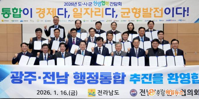 ±è¿µ·Ï Áö»ç¿Í Àü³²½ÃÀ屺¼öÇùÀÇȸ(ÇùÀÇȸÀå ±è¼º ÀåÈﱺ¼ö)´Â ±¤ÁÖ¡¤Àü³² ÇàÁ¤ÅëÇÕ È¯¿µ ¼º¸í¼¸¦ ¹ßÇ¥Çϰí, Ãʱ¤¿ª °æÁ¦ Áß½ÉÁö µµ¾àÀ» À§ÇÑ ÇàÁ¤ ÅëÇÕ¿¡ Àû±Ø Çù·ÂÇÒ ¶æÀ» ¹àÇû´Ù. ¶ÇÇÑ 22°³ ½Ã±ºÀÇ °íÀ¯ÇÑ Æ¯¼º°ú ÀÚÀ²¼ºÀÌ Á¸ÁߵǴ ±ÕÇü¹ßÀüÇü ÅëÇÕ°ú ¹ÎÁÖÀû ÇÕÀÇ, µµ¹Î °ø°¨´ë Çü¼º¿¡ Ã¥ÀÓ ÀÖ°Ô ³ª¼°Ú´Ù´Â ÀÔÀåÀ» ºÐ¸íÈ÷ Çß´Ù.