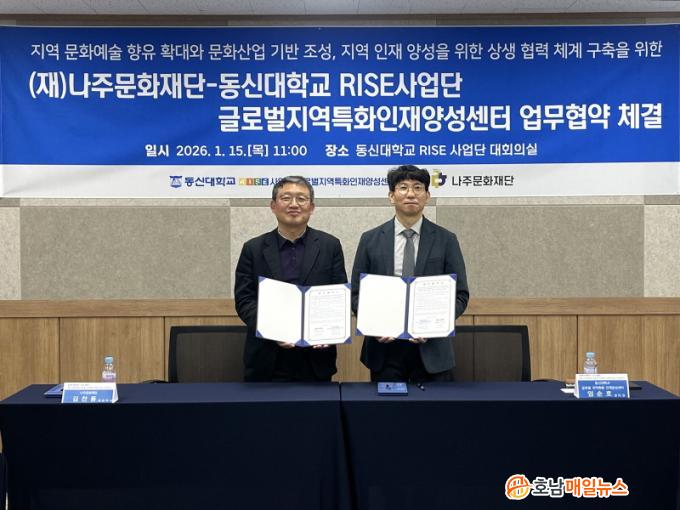 ³ªÁÖ¹®ÈÀç´Ü(ÀÌ»çÀå À±º´ÅÂ)Àº µ¿½Å´ëÇб³ RISE»ç¾÷´Ü ±Û·Î¹úÁö¿ªÆ¯ÈÀÎÀç¾ç¼º¼¾ÅÍ(¼¾ÅÍÀå ÀÓ¼øÈ£)¿Í Áö³ 15ÀÏ Áö¿ª ¹®È¿¹¼ú ÇâÀ¯ È®´ë¿Í ¹®È»ê¾÷ ±â¹Ý Á¶¼º, û³â ÀÎÀç ¾ç¼ºÀ» À§ÇÑ ¾÷¹«Çù¾àÀ» ü°áÇß´Ù°í 16ÀÏ ¹àÇû´Ù.