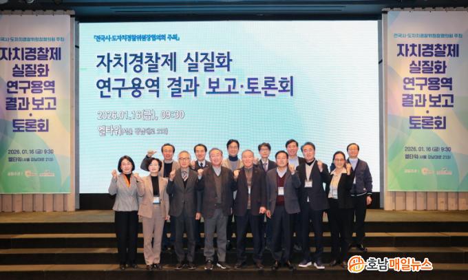 Àü±¹½Ã¡¤µµÀÚÄ¡°æÂûÀ§¿øÀåÇùÀÇȸ´Â À̹ø ¿¬±¸¿ë¿ª °á°ú¸¦ ¹ÙÅÁÀ¸·Î ½Ã¡¤µµ °æÂûûÀ» ±¤¿ªÁö¹æÀÚÄ¡´Üü·Î À̰üÇÏ´Â ¡®¿ÏÀüÇÑ ÀÚÄ¡°æÂûÁ¦¡¯ µµÀÔÀ» À§ÇÑ ´ÜÀÏ °ÇÀǾÈÀ» äÅÃÇϰí, ¹üÁ¤ºÎ ÇùÀÇü ³íÀÇ °úÁ¤¿¡¼ ÇöÀå Áß½ÉÀÇ Á¦µµ ¼³°è°¡ ¹Ý¿µµÇµµ·Ï Àû±Ø ´ëÀÀÇÒ ¹æÄ§ÀÌ´Ù.