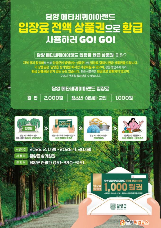 °ü±¤°´Àº ¸ÞŸ¼¼ÄõÀÌ¾Æ °¡·Î¼ö±æ ÀÔÀå ½Ã ³³ºÎÇÑ ÀÔÀå·á Àü¾×À» »óǰ±ÇÀ¸·Î ȯ±Þ¹Þ°Ô µÈ´Ù. ÀÔÀå·á´Â ¾î¸¥ 2,000¿ø, û¼Ò³â¡¤¾î¸°ÀÌ¡¤±ºÀÎ 1,000¿øÀ̸ç, ȯ±Þ¹ÞÀº »óǰ±ÇÀº ¸ÞŸ·£µå ³» »ó°¡¿Í ´ã¾çÀ¾ Áß¾Ó·Î ÀÏ´ë »ó°¡¿¡¼ ¿ì¼± »ç¿ëÇÒ ¼ö ÀÖ´Ù.
