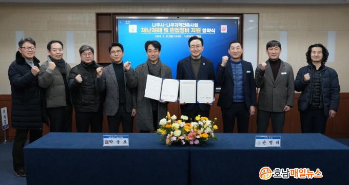 ³ªÁÖ½Ã(½ÃÀå À±º´ÅÂ)´Â 27ÀÏ Àç³ ÇÇÇØ ÁÖÅà ½ÅÃà Áö¿ø°ú ºóÁýÁ¤ºñ Ȱ¼ºÈ¸¦ À§ÇØ ³ªÁÖÁö¿ª°ÇÃà»çȸ¿Í ¾÷¹«Çù¾à(MOU)À» ü°áÇÏ°í °ü·Ã ¼³°è¿Í °¨¸® ¹× °ËÅä ¼ö¼ö·á¸¦ ÃÖ´ë 50% °¨¸éÇϱâ·Î Çß´Ù°í ¹àÇû´Ù.