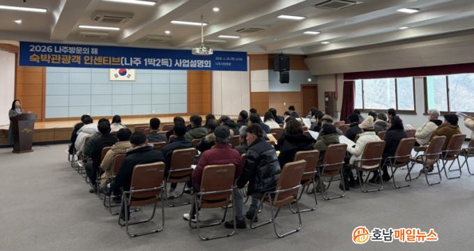 ³ªÁÖ½Ã(½ÃÀå À±º´ÅÂ)´Â Áö³ 29ÀÏ ³ªÁֽùÎȸ°ü¿¡¼ °ü³» ¼÷¹Ú¾÷¼Ò¸¦ ´ë»óÀ¸·Î ¼÷¹Ú°ü±¤ Àμ¾Æ¼ºê Áö¿ø»ç¾÷ ¡®³ªÁÖ 1¹Ú 2µæ¡¯ »ç¾÷¼³¸íȸ¸¦ °³ÃÖÇß´Ù°í 30ÀÏ ¹àÇû´Ù.