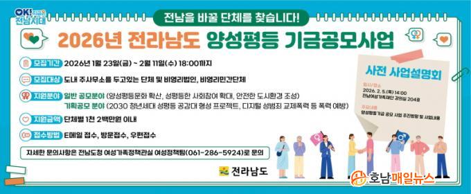 Âü¿©¸¦ ¹Ù¶ó´Â ´Üü´Â 11ÀϱîÁö Àü³²µµ ¿©¼º°¡Á·Á¤Ã¥°ü½Ç·Î ½Åû¼·ù¸¦ µî±â¿ìÆí, ¹æ¹® ¶Ç´Â ÀüÀÚ¿ìÆíÀ¸·Î Á¦ÃâÇÏ¸é µÈ´Ù. ¼¼ºÎ °ø¸ð ³»¿ë°ú ½Åû ¼½ÄÀº Àü³²µµ¿Í ½Ã±º ´©¸®Áý¿¡¼ È®ÀÎÇÒ ¼ö ÀÖ´Ù.