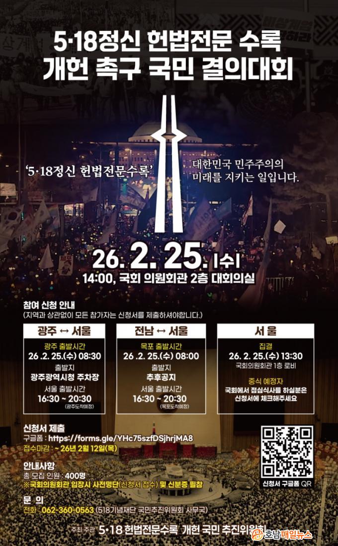 ±¤ÁÖ±¤¿ª½Ã(½ÃÀå °±âÁ¤)´Â Àü±¹ ½Ã¹Î»çȸ´Üü, Á¾±³°è, ¿À¿ù´Üü, ±¤ÁÖ½Ã, Àü³²µµ µîÀ¸·Î ±¸¼ºµÈ ¡®5¡¤18 Çå¹ýÀü¹® ¼ö·Ï °³Çå ±¹¹ÎÃßÁøÀ§¿øÈ¸¡¯(ÀÌÇÏ ÃßÁøÀ§¿øÈ¸)°¡ ¿À´Â 25ÀÏ ¿ÀÈÄ 2½Ã ±¹È¸ ÀÇ¿øÈ¸°ü 2Ãþ ´ëȸÀǽǿ¡¼ ¡®5¡¤18Á¤½Å Çå¹ýÀü¹® ¼ö·Ï °³Çå Ã˱¸ ±¹¹Î°áÀÇ´ëȸ¡¯¸¦ °³ÃÖÇÑ´Ù°í 4ÀÏ ¹àÇû´Ù.