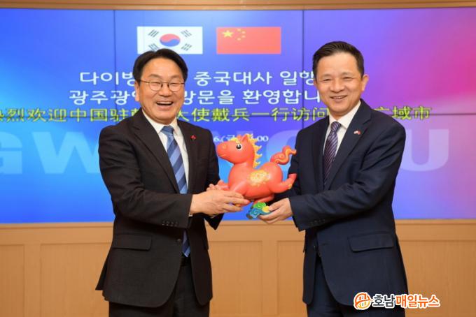° ½ÃÀåÀº ¸ÕÀú ¡°¿ÃÇØ´Â ±¤ÁÖ¿Í Áß±¹ ±¤Àú¿ìÀÇ ÀڸŰῬ 30ÁÖ³âÀÌ µÇ´Â ¶æ±íÀº ÇØÀε¥ ±¹¸³5¡¤18¹ÎÁÖ¹¦Áö¸¦ ã¾ÆÁּż °¨»çÇÏ´Ù¡±¸ç ¡°ÀÌÀç¸í ´ëÅë·É°ú ½ÃÁøÇÎ ÁÖ¼®ÀÌ ÇÑÁßÀÇ µ·µ¶ÇÔÀ» º¸¿©ÁØ ¸¸Å À̹ø ¸¸³²ÀÌ ¿ìÈ£±³·ù Çù·ÂÀÇ ÁÁÀº ±âȸ·Î ¹ßÀüÇϱ⸦ Èñ¸ÁÇÑ´Ù¡±°í ¸»Çß´Ù.