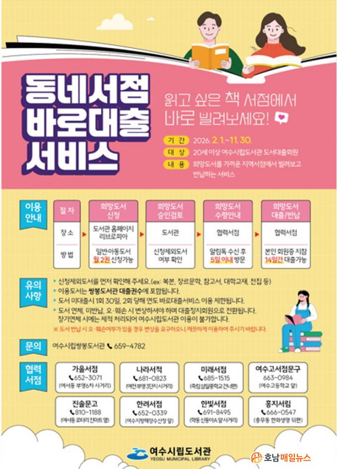 À̹ø ¼ºñ½º¿¡ Âü¿©ÇÏ´Â Çù·Â ¼Á¡Àº °¡À»¼Á¡(¿©¼µ¿), ³ª¶ó¼Àû(½Å±âµ¿), ¹Ì·¡¼Á¡(Á׸²), ¿©¼ö°í¼Á¡¹®±¸(°øÈµ¿), Áø¼Ö¹®°í(¿©¼µ¿), ÇÑ·Á¼Á¡(¿©¼µ¿), ÇѺû¼Á¡(Çе¿), È«Áö¼¸²(Ãæ¹«µ¿) µî ÃÑ 8°³¼Ò´Ù. ´Ù¸¸, ½Åû ÈÄ µµ¼¸¦ ¼ö·ÉÇÏÁö ¾ÊÀ» °æ¿ì 1ȸ´Â 30Àϰ£, 2ȸ ÀÌ»óÀÏ °æ¿ì ÇØ´ç ¿¬µµ ¼ºñ½º ÀÌ¿ëÀÌ Á¦ÇÑµÇ¸ç ´ëÃâÇÑ µµ¼¸¦ ¿À¡¤ÈÑ¼Õ ½Ã¿¡´Â º¯»óÇØ¾ß ÇÑ´Ù.