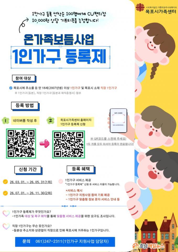 ÇÑÆí, ¸ñÆ÷½Ã°¡Á·¼¾Åʹ ã¾Æ°¡´Â »ó´ã¼Ò ¿î¿µ µî ÇöÀå Áß½É È«º¸¸¦ º´ÇàÇØ 1Àΰ¡±¸ÀÇ Âü¿© Á¢±Ù¼ºÀ» ³ôÀÏ ¹æÄ§ÀÌ´Ù. 1Àΰ¡±¸ µî·Ï ¹× ÇÁ·Î±×·¥ ½Åû ¹®ÀÇ´Â ¸ñÆ÷½Ã°¡Á·¼¾ÅÍ 1Àΰ¡±¸ Áö¿ø»ç¾÷ ´ã´ç(061-247-2311)À¸·Î ÇÏ¸é µÈ´Ù.